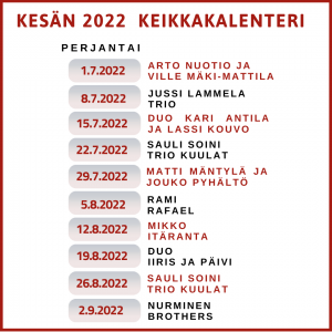 Tässä kesän 2022 Männäisten toritapahtumien keikkakalenteri.